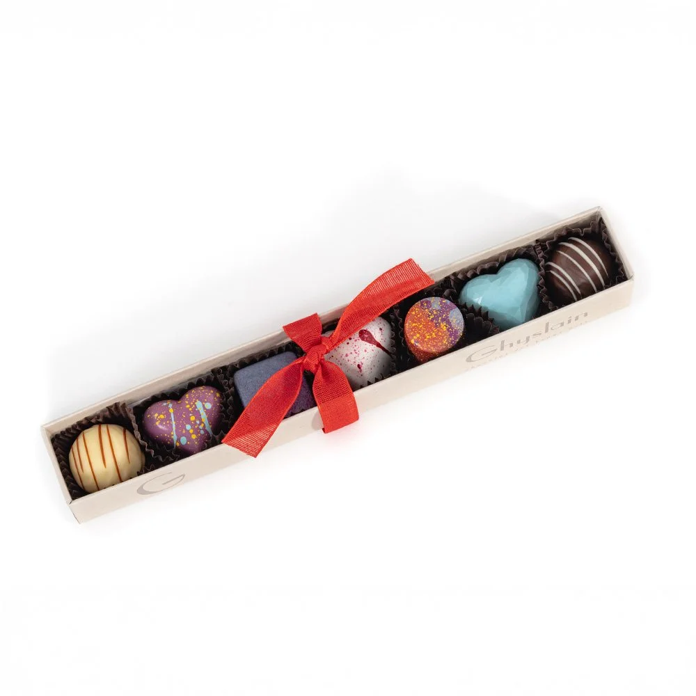 Indulge in a little something special with Ghyslain’s limited edition Valentine chocolates, hand-painted in seasonal hues. Each piece celebrates the season of love with exquisite ganaches in decadent flavors, offering a meticulously crafted taste that will delight your senses.
